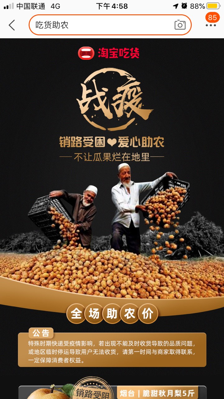 淘寶上線“吃貨助農(nóng)”會場,助力農(nóng)民緩解銷售難題。