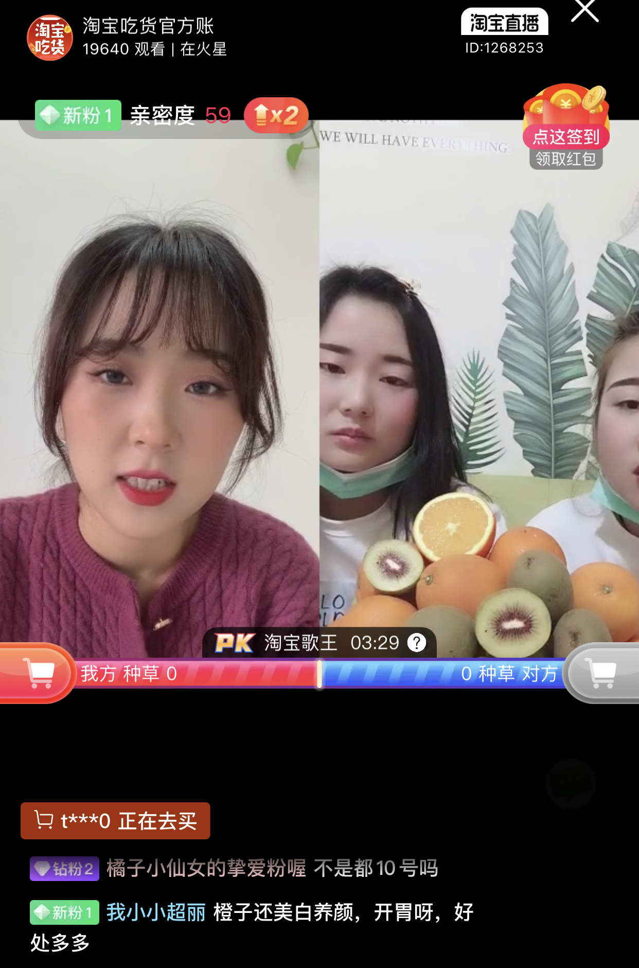 淘寶吃貨官方直播間與原產(chǎn)地連麥,直播推介滯銷農(nóng)產(chǎn)品。