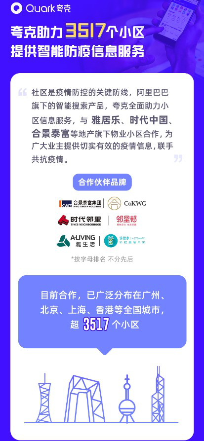 同時(shí),應(yīng)用智能化的數(shù)據(jù)信息處理和展現(xiàn)方式,夸克將平臺(tái)化、規(guī)模化的防疫信息服務(wù)和產(chǎn)品技術(shù)能力開(kāi)放給社會(huì)。與物業(yè)公司合作,夸克為全國(guó)3000多個(gè)小區(qū)居民提供疫情信息服務(wù),為廣東省定制疫情動(dòng)態(tài)數(shù)據(jù)產(chǎn)品,并將同行程查詢(xún)等提供給央視網(wǎng)等權(quán)威媒體平臺(tái)。疫情期間,面向全社會(huì)開(kāi)放的數(shù)字化能力,成為很多地方抗疫、復(fù)工等工作的基礎(chǔ)設(shè)施。