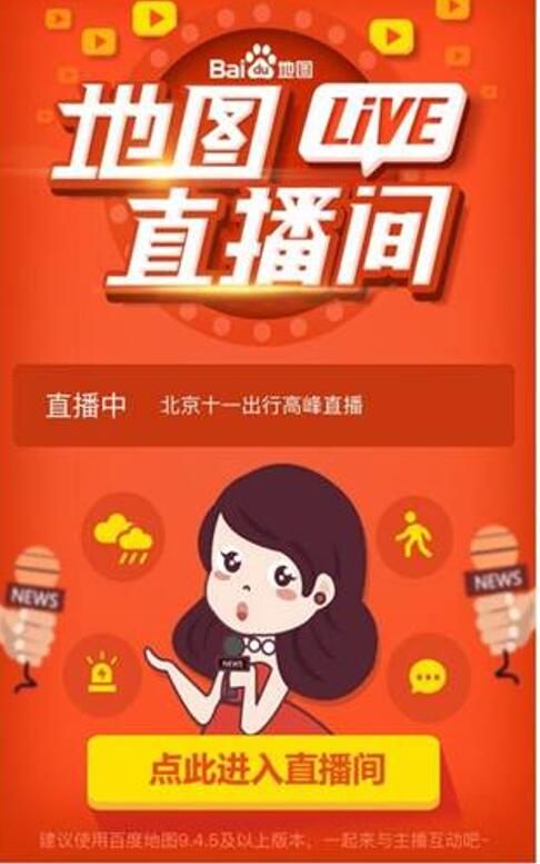 出行高峰時(shí)段,百度地圖聯(lián)合江蘇省、四川省、河南省,北京、重慶、?凇⑽錆h等12家交通管理和交通運(yùn)輸部門,攜手打通交通事件及時(shí)響應(yīng),開通實(shí)時(shí)直播間播報(bào),從路況方向、出行方向、車主關(guān)愛方向和景區(qū)推薦等方面,為用戶提供路況、景點(diǎn)人流等交通信息。據(jù)統(tǒng)計(jì),今年國慶黃金周共有超過90萬人涌入路況直播間獲取出行信息,為廣大用戶的出行提供了最具價(jià)值的參考。