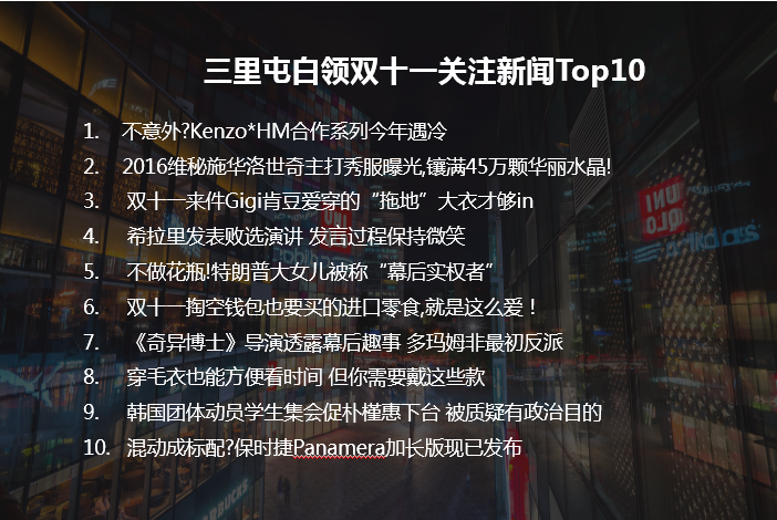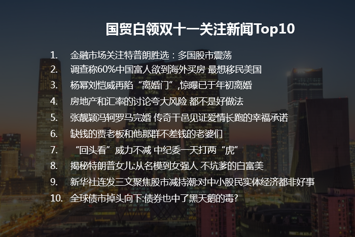 。▏(guó)貿(mào)白領(lǐng)雙十一關(guān)注新聞前十名)