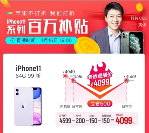 提供兩百萬補(bǔ)貼,轉(zhuǎn)轉(zhuǎn)CEO黃煒直播賣手機(jī)