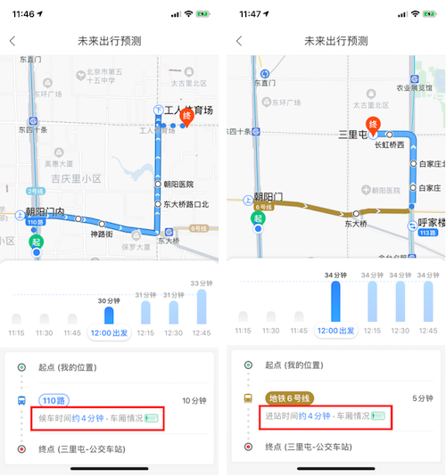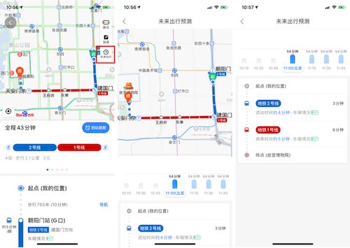 。ā拔磥沓鲂小惫δ芸深A(yù)估公交候車、地鐵進(jìn)站時(shí)間以及車廂內(nèi)擁擠情況)