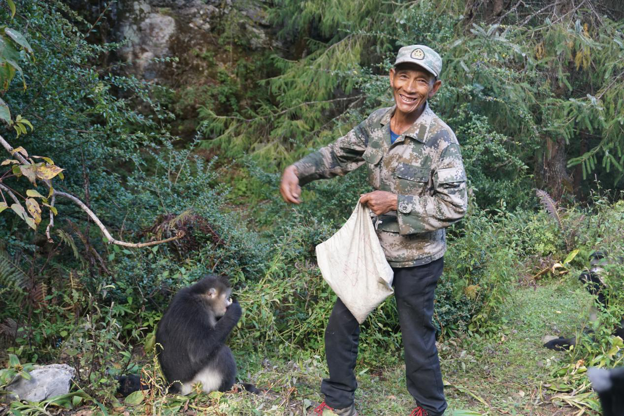 1997年,白馬雪山自然保護區(qū)招募護林員看山護猴,余建華主動應征并且一干就是23年。在這23年中,老余從令野生動物膽寒的獵人老余變成了滇金絲猴們的“保護傘”老余叔。