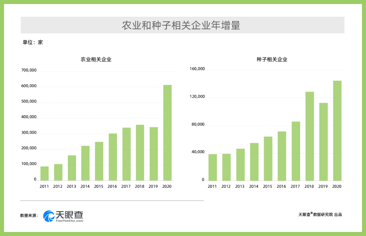 眾所周知,產(chǎn)業(yè)興旺是鄉(xiāng)村振興的重要基礎,是解決農(nóng)村一切問題的前提。2021全國兩會召開之際,商業(yè)查詢平臺天眼查發(fā)布“鄉(xiāng)村振興”相關(guān)產(chǎn)業(yè)大數(shù)據(jù),通過研究農(nóng)業(yè)、種子、鄉(xiāng)村新型消費產(chǎn)業(yè)的相關(guān)企業(yè)數(shù)據(jù),展現(xiàn)農(nóng)村經(jīng)濟新變化及“鄉(xiāng)村振興”發(fā)展新機遇。