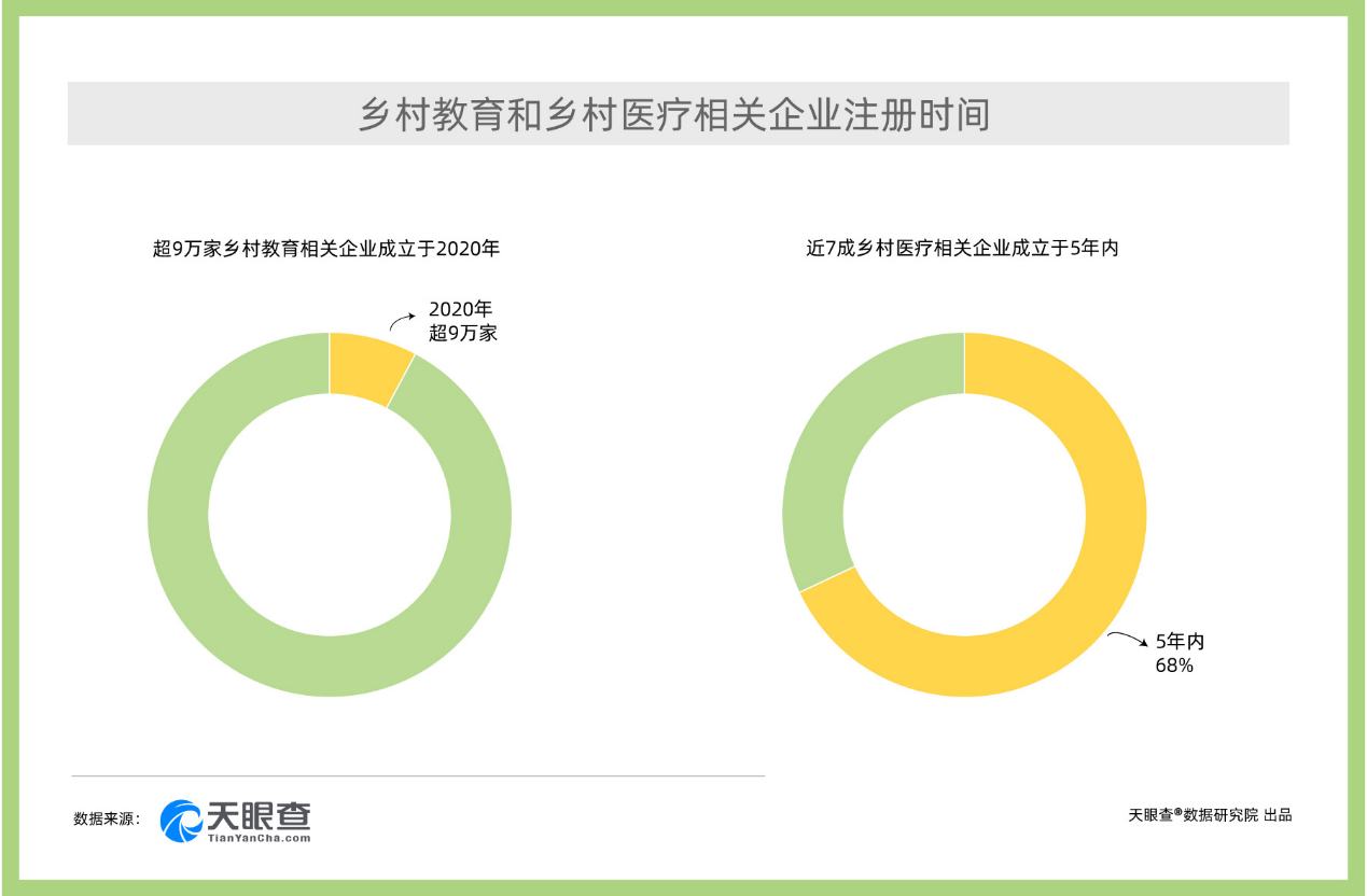 全面推進健康鄉(xiāng)村建設——近七成鄉(xiāng)村醫(yī)療相關(guān)企業(yè)成立于5年內(nèi)。健康鄉(xiāng)村建設是全面推進鄉(xiāng)村振興戰(zhàn)略的重要內(nèi)容,百姓健康是實現(xiàn)鄉(xiāng)村振興的前提和基礎。在農(nóng)村醫(yī)療建設方面,近年來,鄉(xiāng)村醫(yī)療的"空白點"不斷被補足,鄉(xiāng)村醫(yī)療企業(yè)蓬勃發(fā)展。天眼查大數(shù)據(jù)顯示,我國目前共有超54萬家鄉(xiāng)村醫(yī)療相關(guān)企業(yè)。值得注意的是,我國近七成的鄉(xiāng)村醫(yī)療相關(guān)企業(yè)成立于5年內(nèi)。