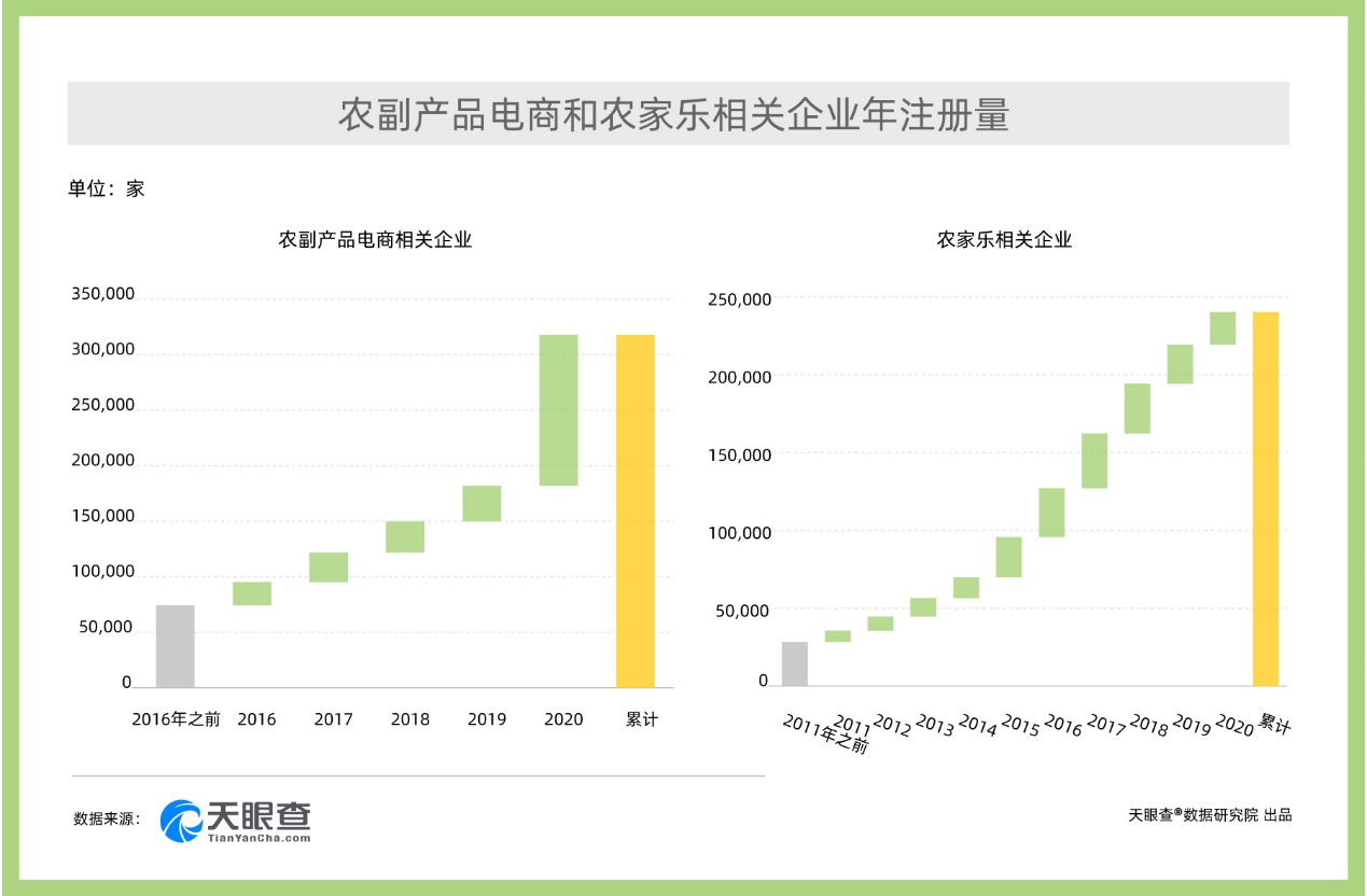 電商助力鄉(xiāng)村振興"加速跑"——2020年新增農(nóng)副產(chǎn)品電商相關(guān)企業(yè)超13萬家。近年來,隨著新型消費的興起,農(nóng)村電商為鄉(xiāng)村振興插上了"翅膀","藏在深山人不識"的土貨正搭著互聯(lián)網(wǎng)的快車,駛向更廣闊的市場。據(jù)天眼查大數(shù)據(jù)顯示,我國目前有超過29萬家農(nóng)副產(chǎn)品電商相關(guān)企業(yè)。從地域分布來看,福建和山東兩省的農(nóng)副產(chǎn)品電商相關(guān)企業(yè)數(shù)量較多,總數(shù)超過7萬家,占全國近三成。2020年,我國今年新增農(nóng)副產(chǎn)品電商相關(guān)企業(yè)超13萬家,數(shù)量超過2016-2019年新增相關(guān)企業(yè)數(shù)量之和。