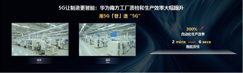 在生產(chǎn)華為Mate、P系列手機的華為南方工廠,我們秉持“自己的降落傘自己先跳”,打造“5G工廠”來制造5G設(shè)備。5G與其他智能技術(shù)融合,讓制造更智能。