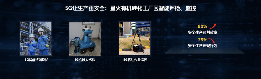 在江西星火有機硅化工廠,通過5G智能終端巡檢、5G機器人巡檢、5G移動作業(yè)監(jiān)控等手段對廠區(qū)內(nèi)全要素進行視頻采集和全天候分析,使得工藝安全預(yù)判效率提升了80%;同時,在5G移動作業(yè)監(jiān)控下,生產(chǎn)作業(yè)違規(guī)行為減少了78%。