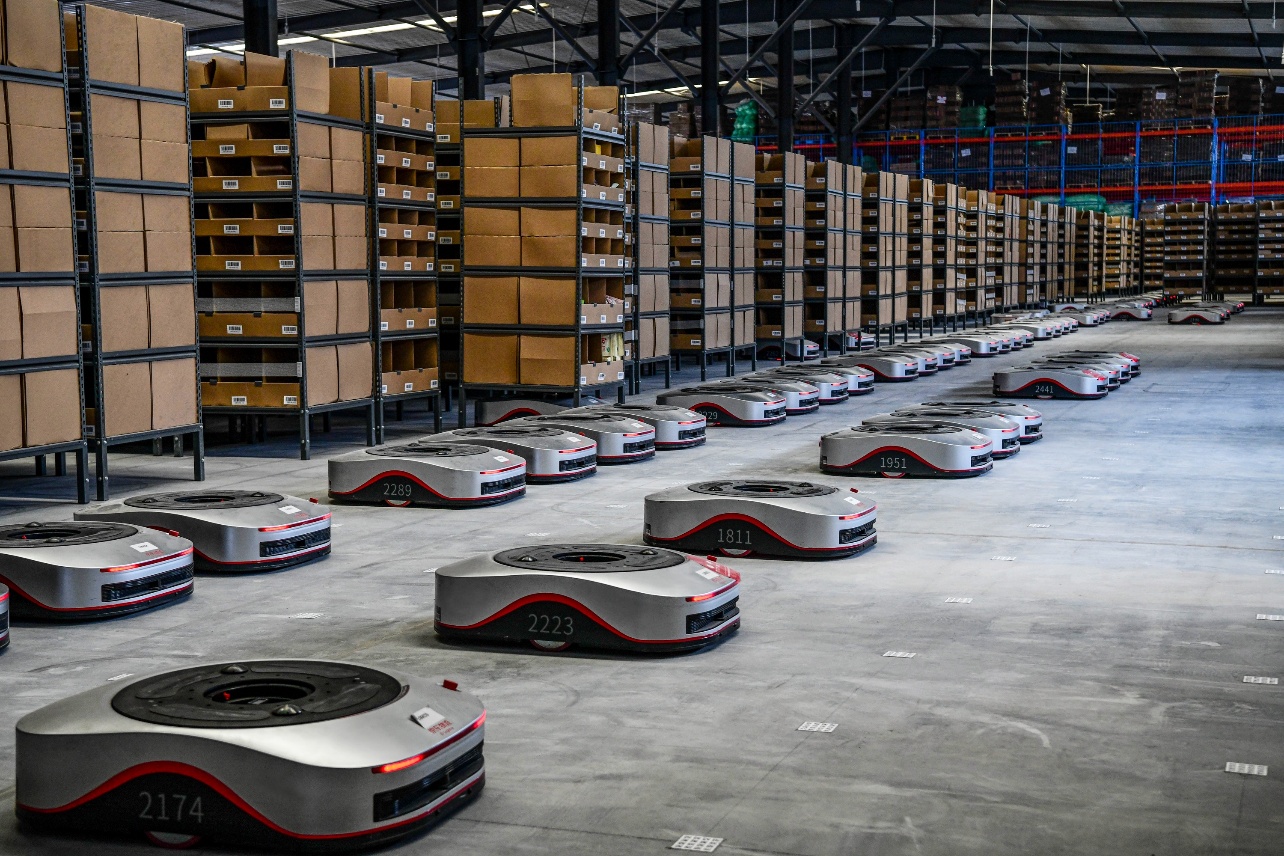 6月9日,在位于西藏拉薩的自治區(qū)級(jí)公共物流倉(cāng)儲(chǔ)配送中心內(nèi),智能化的搬運(yùn)型AGV機(jī)器人正載著貨架高速飛馳、往來穿梭,揀選工作人員馬不停蹄地將貨架上的貨物取出……這是由京東物流自主研發(fā)的搬運(yùn)型AGV機(jī)器人——“地狼”正式在高原地區(qū)啟用,100多臺(tái)機(jī)器人同時(shí)投用,讓大型智能物流倉(cāng)首次落地青藏高原。