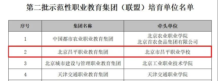 近日,教育部職業(yè)教育與成人教育司公布了第二批示范性職業(yè)教育集團(聯(lián)盟)培育單位名單,北京昌平職業(yè)教育集團被確定為全國示范性職業(yè)教育集團(聯(lián)盟)培育單位。