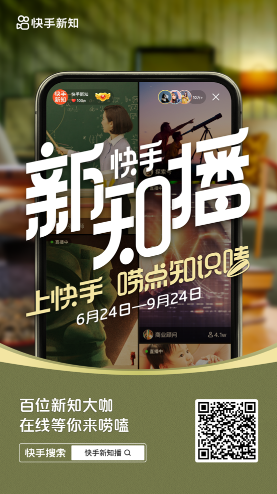 專業(yè)權(quán)威的知識科普,并非只能一板一眼,也可以生動、有趣、接地氣、有互動性。6月24日,快手宣布將推出大型直播活動“快手新知播”。聯(lián)動100名知識大咖、50余家專業(yè)機構(gòu),以及超過1000名快手知識主播,在3個月的時間里帶來上萬場知識直播,為網(wǎng)友帶去實用、新奇、有趣的泛知識內(nèi)容,并助力知識創(chuàng)作者在平臺實現(xiàn)變現(xiàn),形成泛知識內(nèi)容生產(chǎn)消費閉環(huán)。