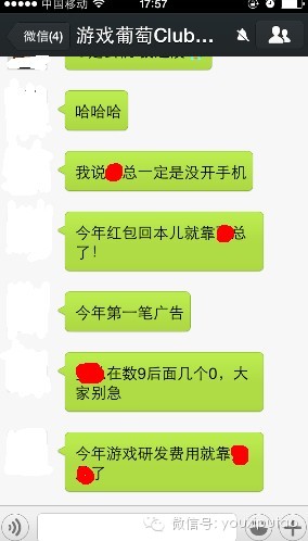 努力也是必要的,在競(jìng)爭(zhēng)激烈的群里,想隨便刷一下就撿到紅包的可能性完全不存在。在游戲葡萄的讀者微信群里各大公司的VP、CEO已經(jīng)為紅包廢寢忘食。