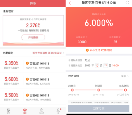 面對未來可能上漲的打車費,不少小伙伴都給自己立了努力工作、升職加薪的flag。在這里要為大家介紹除了辛苦工作外,還有一種可以讓你“癱著、躺著都賺錢”的方式——理財。小伙伴們可以在百度錢包上選擇理財服務,包括1元起投、隨存隨取的活期理財;平均預期年化收益在5.0%以上的優(yōu)質定期理財;還有精選配置的基金投資。這種省時省力且自由靈活的賺錢方式,用了就真的可以說是不愁每日的打車費啦,近期更是上線了預期年化收益率達6%的“新客專享·百安1月”定期理財,心動不如行動,小伙伴們趕快搶購啊!
