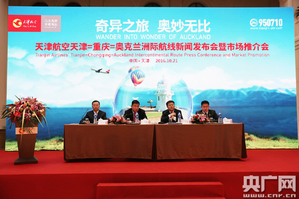 央廣網(wǎng)天津10月22日消息(記者陳慶濱 通訊員岳海梁 劉瑩)記者昨日從天津航空舉辦的天津=重慶=奧克蘭航線發(fā)布會上獲悉,天津航空將于12月開通天津=重慶=奧克蘭首條大洋洲航線,這是繼今年6月份開通天津=莫斯科、天津=重慶=倫敦兩條歐洲航線后又一條洲際航線,已是天津航空半年內(nèi)開通的第三條洲際航線。