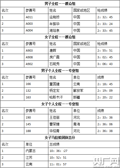 29日上午,第十三屆全運(yùn)會馬拉松比賽在武清鳴槍開跑,值得注意的是,本屆全運(yùn)會首次增設(shè)群眾組馬拉松,進(jìn)入前三,男女馬拉松全程群眾組選手均可獲得金銀銅牌的獎勵。經(jīng)過近三個小時的角逐,來自山東省淄博市的運(yùn)艷橋以兩小時三十二分四十五秒的成績奪得男子全程群眾組的冠軍,唐輝則以兩小時五十五分五十一秒的成績摘得女子全程群眾組的金牌。此外,董國建、王佳麗分別摘得專業(yè)組男子、女子全程個人冠軍。內(nèi)蒙古隊收獲女子馬拉松團(tuán)體總分第一名的成績,將女子團(tuán)體金牌收入囊中。