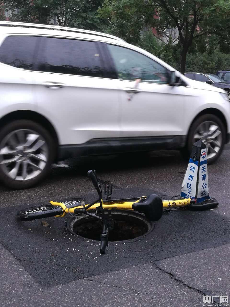 央廣網(wǎng)天津6月22日消息,近日,有網(wǎng)友爆料共享單車又添新技能,警示市民井蓋丟失。共享單車雖然顏色鮮艷,但是并不代表可以多方使用,陰雨天為保證行人、汽車出行,還需要有關(guān)部門盡職盡能,保障道路安全。