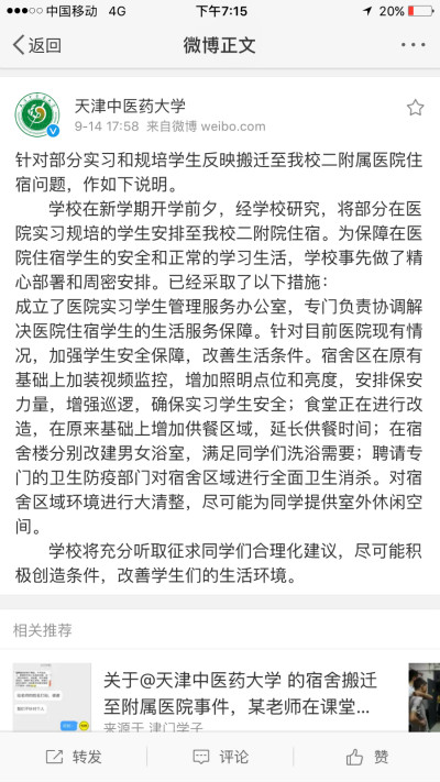 天津中醫(yī)藥大學(xué)官方微博作出說明 網(wǎng)友質(zhì)疑