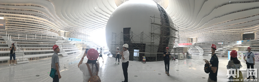 走入濱海文化中心正門,可以看到的是有“濱海之眼”之稱的濱海圖書館,圖書館最大的特點是其內(nèi)部的球形多功能廳。這個球形多功能廳外部建成了一個穹幕影院,40萬個LED燈珠將鑲嵌在全穿孔鋁板上,大球的外部可以播放電影。大球內(nèi)部則是濱海圖書館的報告廳,廳內(nèi)可容納將近100人,并采用可伸縮座椅設(shè)計。目前,該圖書館已經(jīng)運(yùn)進(jìn)入18萬冊圖書,而后續(xù)藏書量可達(dá)130萬冊。