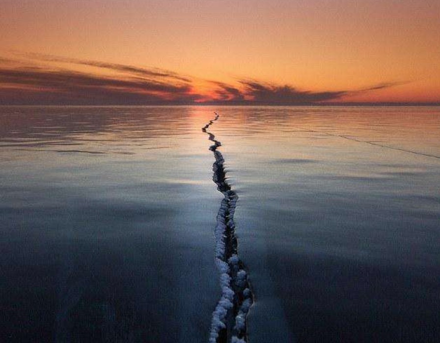 大風(fēng)降溫 中俄界湖冰層被刮開