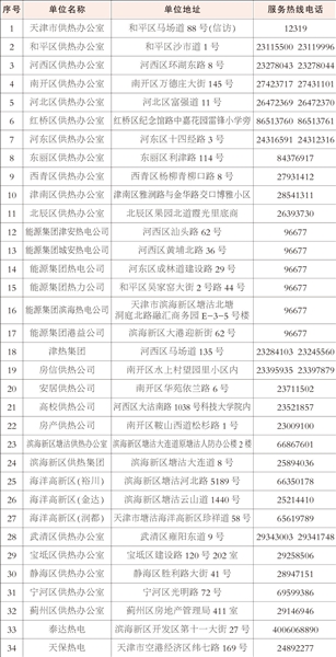 2018—2019供熱期各單位信息一覽表