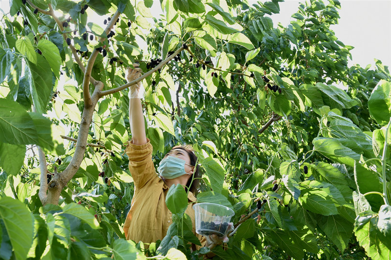 游客采摘桑葚(央廣網(wǎng)發(fā) 薊州區(qū)供圖)