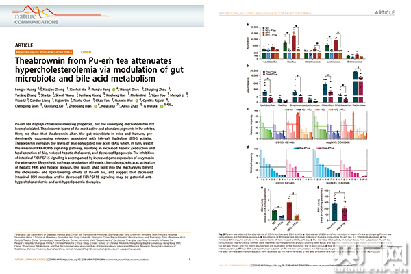 《Nature》子刊《Nature Communications》刊發(fā)賈偉教授及團(tuán)隊完成的關(guān)于普洱茶降脂機(jī)制的研究