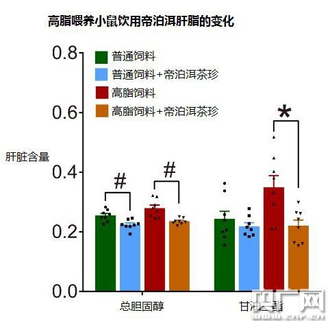在人體實驗中,13名男性健康受試者進(jìn)行一周的標(biāo)準(zhǔn)飲食,之后每天飲用3g帝泊洱普洱茶茶珍,持續(xù)4周,結(jié)果發(fā)現(xiàn)膽固醇和甘油三酯水平顯著降低。動物實驗也發(fā)現(xiàn)了類似的結(jié)果。