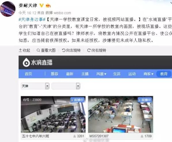 記者在直播平臺看到,盡管是網(wǎng)友今天才曝光到微博上,但該直播的留言最早可以追溯到去年9月份。教室里的實時監(jiān)控錄像怎么會流傳到直播平臺上?是學(xué)校官方行為還是個人行為?而這種直播,是否經(jīng)過學(xué)校、學(xué)生以及學(xué)生家長的授權(quán)許可?