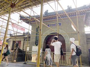 與此同時,作為國寶級文物的天后宮前兩側(cè)的幡桿修復(fù)在即。在天后宮前,記者看到幡桿已經(jīng)被搭建的圍擋圍繞,據(jù)天津民俗博物館(天后宮)相關(guān)負責(zé)人介紹,目前正在進行的是宮前廣場幡桿的維修工程,由于維修中發(fā)現(xiàn)腐朽嚴重,所以修改了維修方案,等待國家文物局的批復(fù)對幡桿進行全面修復(fù)。同時規(guī)劃戲樓將來準備開放,將不定期地進行公益性的民俗演出。