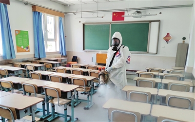 全面消殺迎復(fù)學(xué)(圖),圖為和平區(qū)鞍山道小學(xué)全面進(jìn)行校園消殺工作。連日來,我市各中小學(xué)開展復(fù)學(xué)前全面消殺工作,并以“實(shí)時(shí)消殺”、公共區(qū)域“一日一消殺”工作制加強(qiáng)校園防疫消毒及衛(wèi)生保潔力度,確保校園的安全環(huán)境以迎接師生開學(xué)返校。
