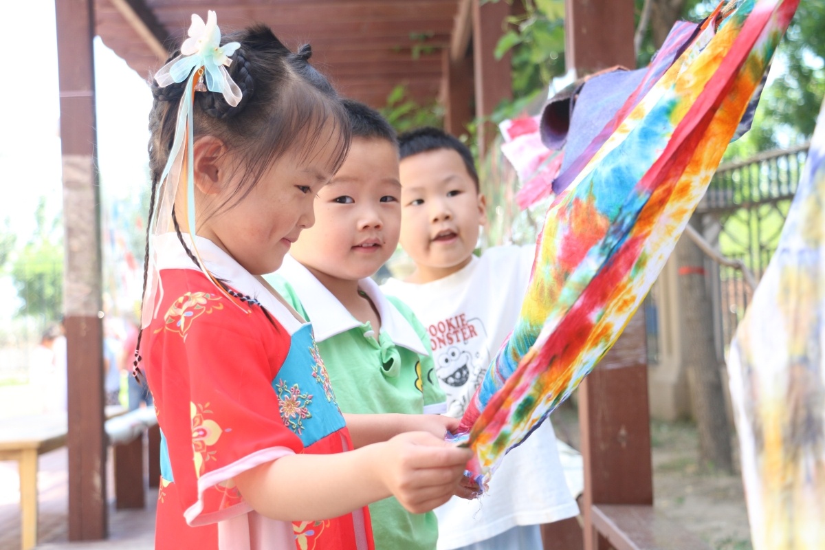 日前,天津市北辰區(qū)溫雅幼兒園的小朋友們在老師的指導(dǎo)下,感受中華民族傳統(tǒng)的蠟染技巧。