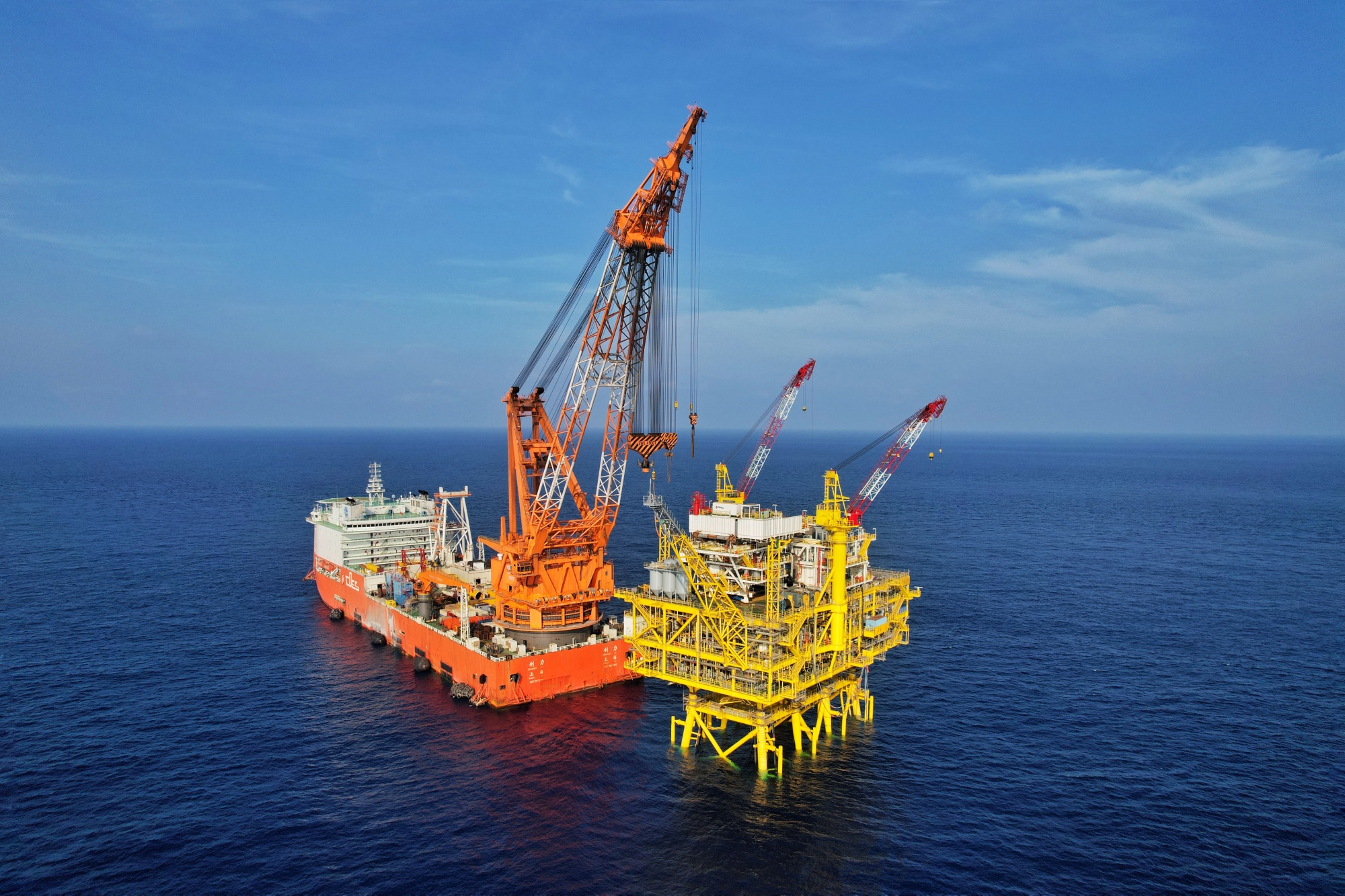 亞洲第一深水導(dǎo)管架平臺(tái)“海基一號(hào)” 建設(shè)完工