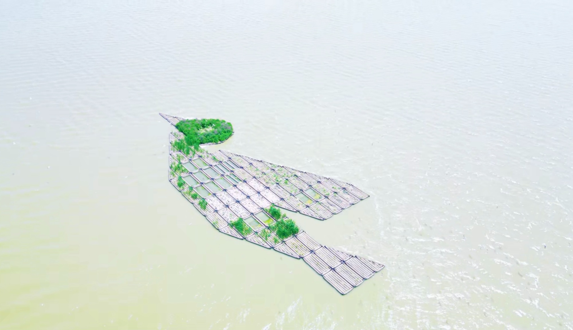 屏幕里的這座“綠島”,正是今年5月剛剛落成的七里海濕地生態(tài)浮島。