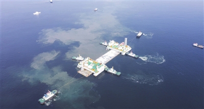 圖為大連灣海底隧道E7管節(jié)在運(yùn)輸過程中。 (照片由中交一航局提供)