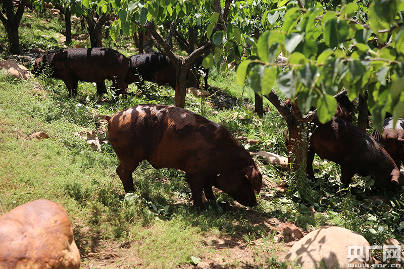 “呼嚕,呼!,章師傅兩步并作一步跨入一片梨園,五六頭黑豬聞聲從樹(shù)蔭下跑了出來(lái)。領(lǐng)頭的黑豬皮毛光滑,在陽(yáng)光下慵懶地蹭了下梨樹(shù),可惜五月份的果子還未結(jié)好,只震落了幾片葉子!拔覀兩B(yǎng)的這群黑豬不吃飼料都吃五谷雜糧,等果子成熟就吃梨,天氣涼了還會(huì)加些板藍(lán)根、板栗呢。”天津市薊州區(qū)牧凱豐黑豬養(yǎng)殖基地的負(fù)責(zé)人章貴峰說(shuō)。眼前這片土地已經(jīng)成為這群黑豬的“伊甸園”。