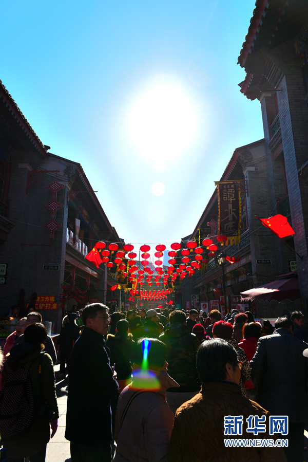 猴年春節(jié)期間,年味最濃的當(dāng)屬天津市古文化街旅游區(qū)。新華網(wǎng)發(fā)(倪曉宇 攝)