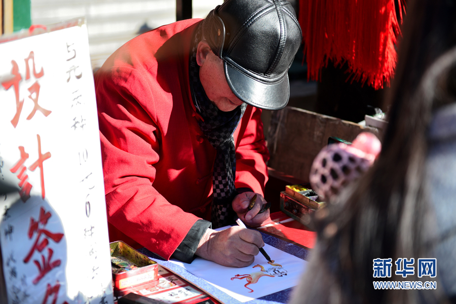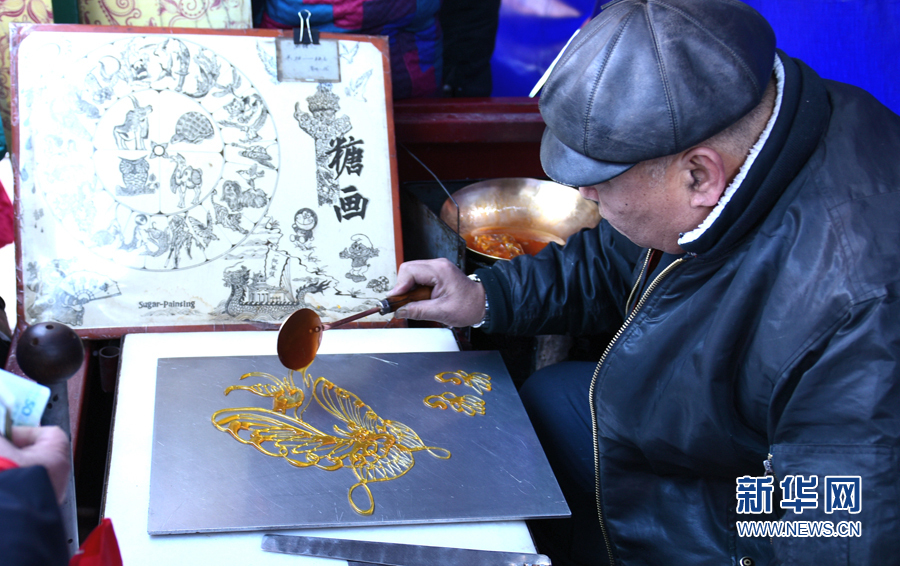 民間手藝人在繪制糖畫。新華網(wǎng)發(fā)(倪曉宇 攝)