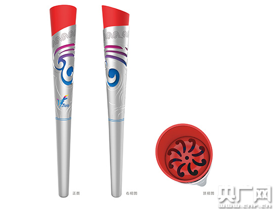 本屆全運會火炬在設(shè)計上則充分考慮到將諸多元素融合一體,給人以美觀、莊重、大氣的感受。視覺元素為體現(xiàn)主辦地天津地域特征的海河浪花與亮麗的彩云圖案,奔騰的浪花不僅代表了運動員拼搏奮進的體育精神,也預(yù)示著天津這座歷史名城巨大的發(fā)展力量,而彩云圖案又象征著吉祥與和諧,為典型的中國傳統(tǒng)紋樣,傳遞出中國的概念,既預(yù)示出本屆運動會開成一屆鼓勁、和諧、精彩的體育盛會,也預(yù)示著本屆全運會將取得圓滿成功。火炬制作采用銀色的金屬材質(zhì),處理成亞光效果,莊重典雅,雙層結(jié)構(gòu)層次豐富,鏤空的制作彰顯出工藝的精美,而豐富的漸變色彩又賦予了豐富的聯(lián)想空間。