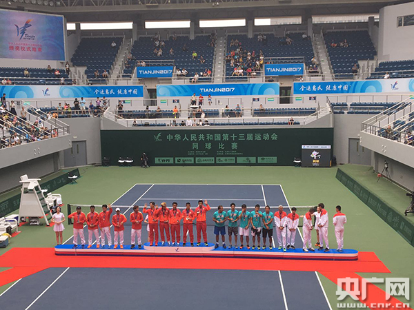 央廣網(wǎng)天津6月18日消息(記者 劉陽)6月18日,第十三屆全運(yùn)會(huì)網(wǎng)球團(tuán)體賽決賽在天津網(wǎng)球中心舉行。江蘇隊(duì)奪得男子組冠軍,天津隊(duì)奪得女子組冠軍。男子組最后決勝隊(duì)伍江蘇隊(duì)與浙江隊(duì)實(shí)力相近,最后以江蘇隊(duì)雙打配合優(yōu)勢險(xiǎn)勝浙江隊(duì)。而女子組團(tuán)體賽天津隊(duì)以兩名實(shí)力戰(zhàn)將張帥、彭帥,兩場單打以明顯優(yōu)勢奪得冠軍。