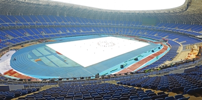 十三屆全運會開幕式將在天津奧林匹克中心體育場舉行,目前體育場草坪更換、擴大觀眾座席、增加接待廳等升級改造工作已進入收尾階段,即將以嶄新面貌迎接全運會的召開。本報記者 張磊 攝