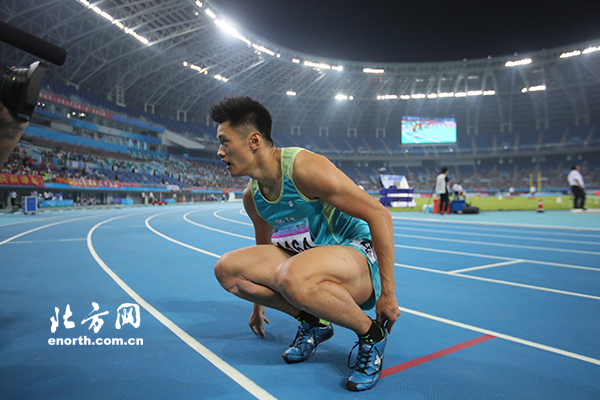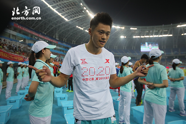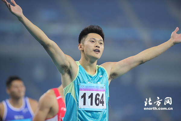 接近完美的起跑,沒有絲毫停頓的彎道轉(zhuǎn)直道以及令人振奮的最后沖刺,這種種聚集在一起凝聚成一個全新的全國紀錄。奪冠后的謝震業(yè)雙手指天,享受勝利所帶來的喜悅。5日的夜晚,謝震業(yè)再次跑出最好的自己,在跑道上他盡情展現(xiàn)風(fēng)采,將年輕人追逐夢想的姿態(tài)展現(xiàn)的淋漓盡致。