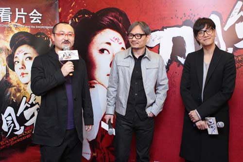 新片《畫皮2》中的三人行,從左至右:導(dǎo)演烏爾善、監(jiān)制陳國(guó)富和演員陳坤