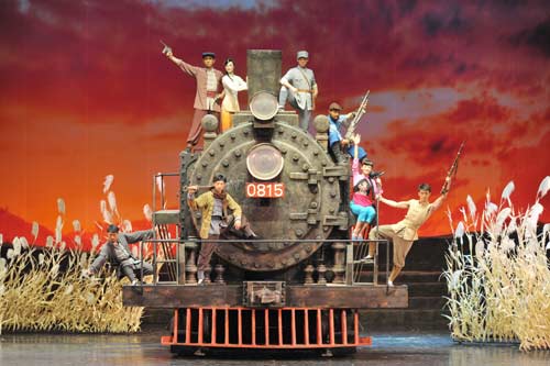 中廣網(wǎng)北京5月18日消息(記者 呂煒)總政歌舞團(tuán)的大型紅色經(jīng)典舞劇《鐵道游擊隊(duì)》將于5月19日至21日在國家大劇院再次上演,這是全軍系統(tǒng)慶祝建黨90周年的重要演出,也被納入國家大劇院獻(xiàn)禮黨的90華誕百場系列演出。舞臺文學(xué)劇本的創(chuàng)作者趙大鳴、作曲趙麟、總編導(dǎo)楊笑陽,將向觀眾解讀這部在視覺呈現(xiàn)和精神內(nèi)涵雙方面具有高水平的力作。紅色舞劇《鐵道游擊隊(duì)》首演之地是國家大劇院。一經(jīng)推出,以其濃郁的山東地域風(fēng)情、豪邁的抗日軍民風(fēng)采、壯麗凝重的歷史畫卷,給觀眾帶來全新的藝術(shù)享受。特別是當(dāng)年曾親身參加“鐵道游擊隊(duì)”戰(zhàn)斗的老同志的建議,對全劇的劇情、人物、舞蹈編排、音樂創(chuàng)作、服裝和舞美設(shè)計(jì)等多個(gè)關(guān)鍵環(huán)節(jié)進(jìn)行了潛心的修改和精心的打磨,力求達(dá)到更高的藝術(shù)水準(zhǔn)。