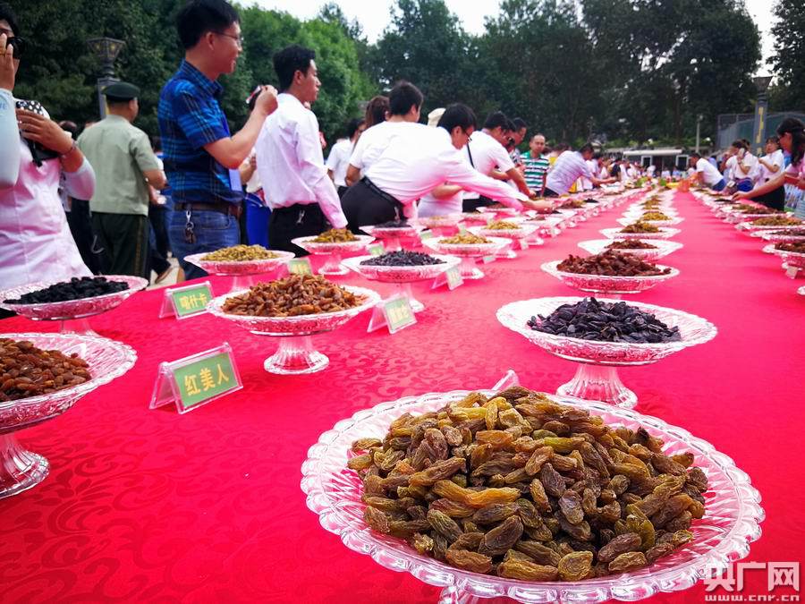 8月26日葡萄節(jié)開幕當(dāng)天,在世界上最甜蜜的街道—吐魯番葡萄長廊舉辦了“無核白”“淑女紅”“火焰無核”等216個品種鮮食葡萄和葡萄干、葡萄酒和馕系列展示、品嘗活動,展出了“吐魯番紅葡萄”、“馬奶子”、“波爾萊特”7個品種果穗最大最小、果粒最大最小、最甜、風(fēng)味最獨特、口感最脆等多種特質(zhì)葡萄,讓各地游客觀眾大飽口福,大飽眼界,令人向往。