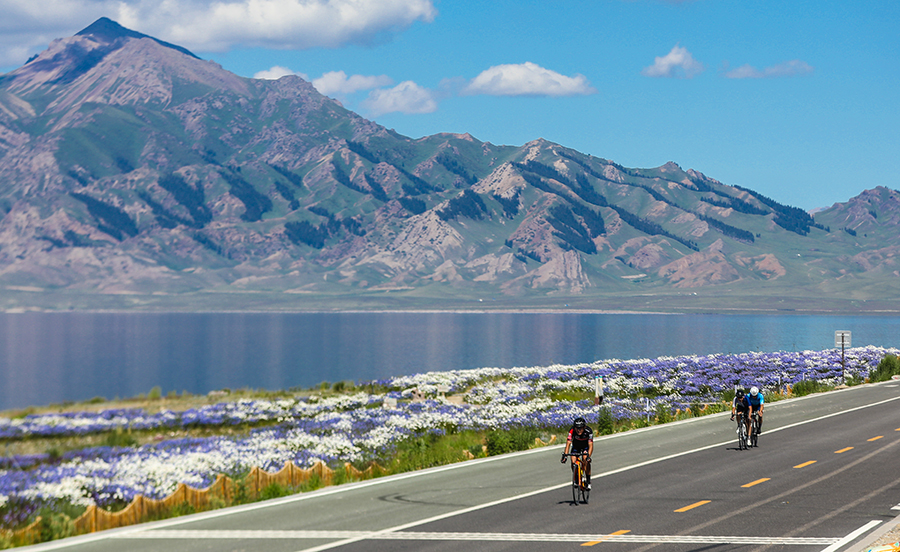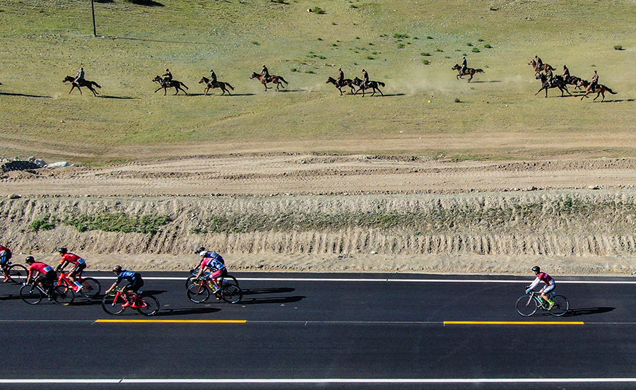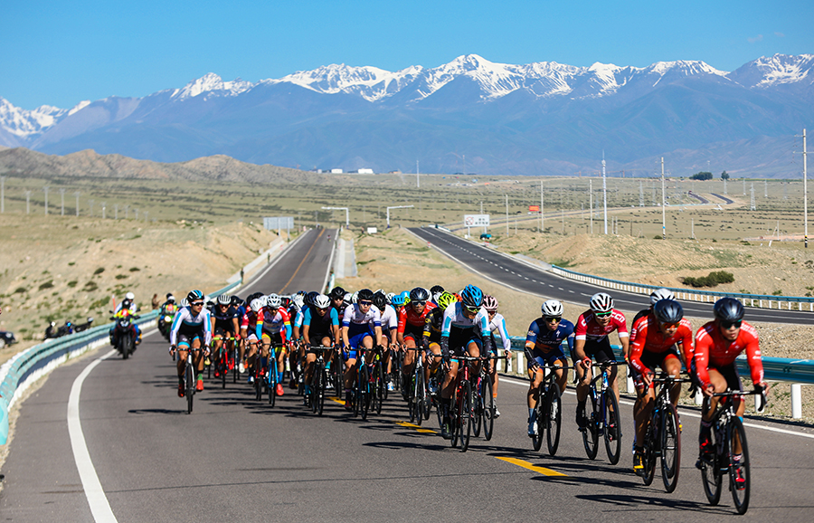 新疆第十三屆環(huán)賽里木湖公路自行車(chē)賽第四賽段(于蘇甫·艾尼 攝)