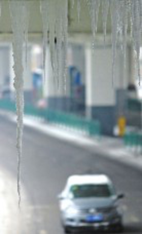 新疆網(wǎng)訊(記者黃杰敏攝影報道)受連續(xù)多日降雨、降雪天氣影響,烏魯木齊部分路段高架橋下、房檐等結(jié)出冰錐。相關部門提醒市民,近期出行注意高處墜冰,盡量遠離結(jié)著冰錐的建筑物。