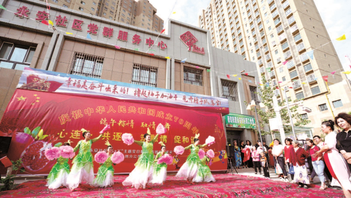 天山網(wǎng)訊(記者楊坤攝影報(bào)道)6月3日,在新疆巴音郭楞蒙古自治州庫(kù)爾勒市團(tuán)結(jié)街道永安社區(qū),天山雪蓮藝術(shù)團(tuán)演員在表演舞蹈《共筑中國(guó)夢(mèng)》。當(dāng)日,該社區(qū)聯(lián)合中國(guó)電信巴州分公司開展“心連心、共逐夢(mèng)、筑融情、促和諧”聯(lián)誼活動(dòng),大家歡聚一堂,一起包粽子,賞歌舞,喜迎中國(guó)傳統(tǒng)節(jié)日端午節(jié)。(責(zé)編:陳卓然)