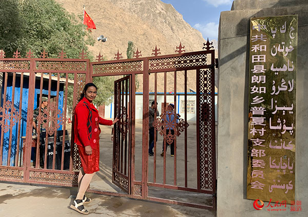 圖為村民來到昆侖山深處的朗如鄉(xiāng)普夏村村委會。許珠珠攝