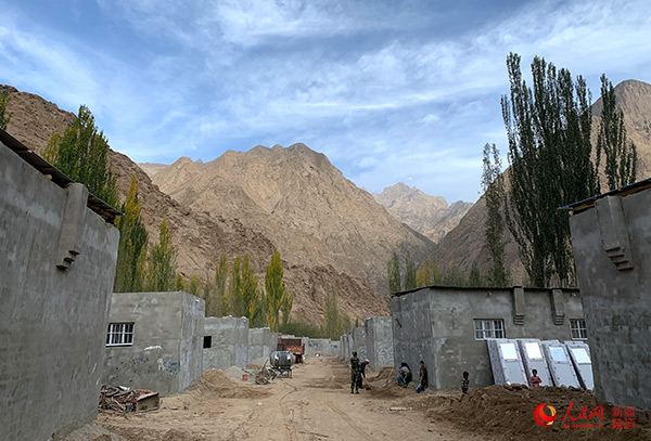 記者在村里看到,由北京援疆資金支持的安居富民房正在緊張施工中,房屋經(jīng)過統(tǒng)一的規(guī)劃,預留出街道、廣場等公共設施位置,每戶房屋都預裝上了下水道和電力設施,并鋪上從山外買來的地板磚。